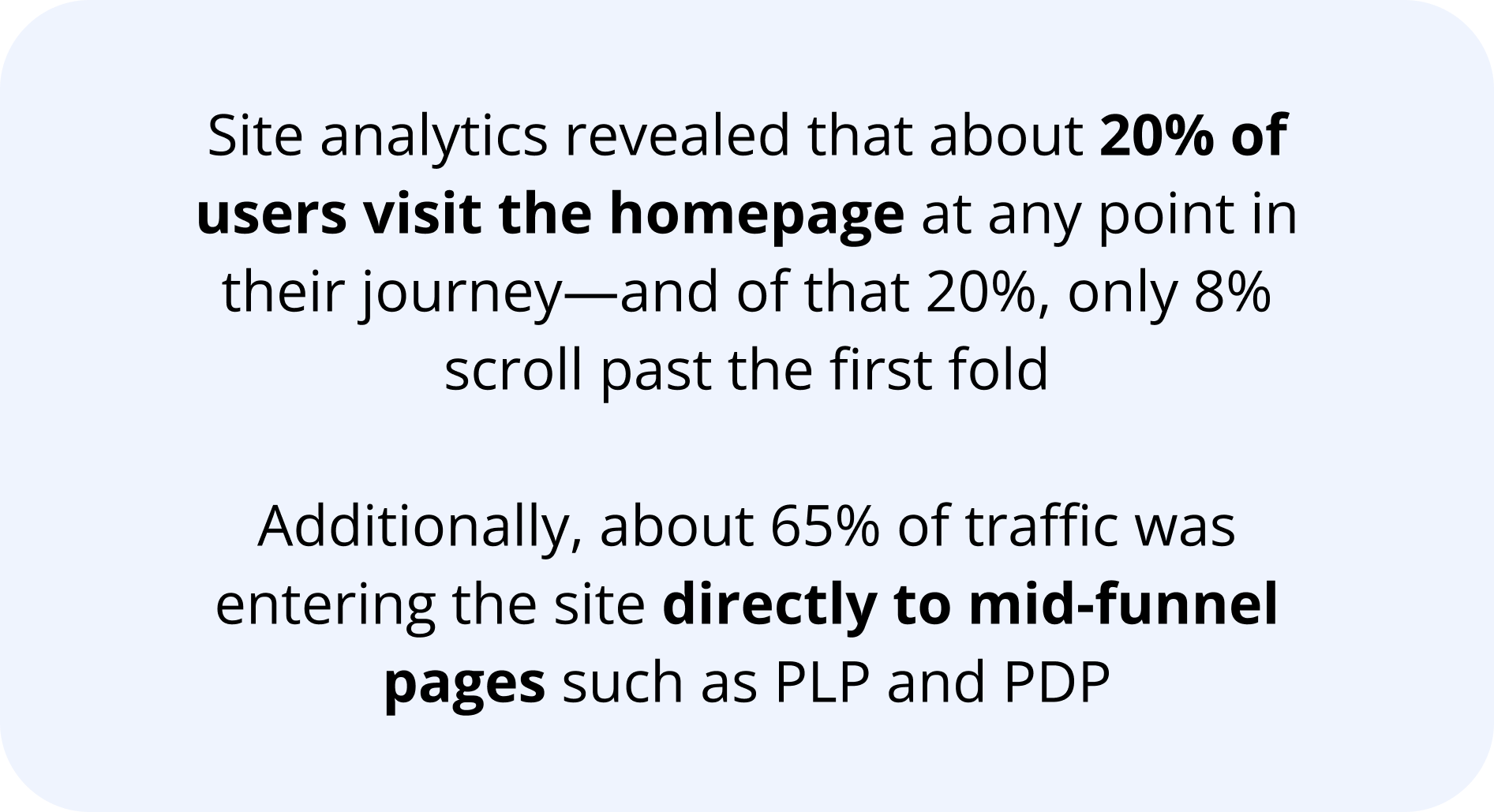 At Academy.com, the most compelling deals and promotions are traditionally showcased on homepage. However, only about 20% of users actually visit homepage, with the majority landing directly on product listing pages (PLPs) and product detail pages (PDPs) via search engines, paid media, and email campaigns. This disconnect significantly reduces the visibility and effectiveness of our promotional strategy, contributing to missed conversion opportunities.